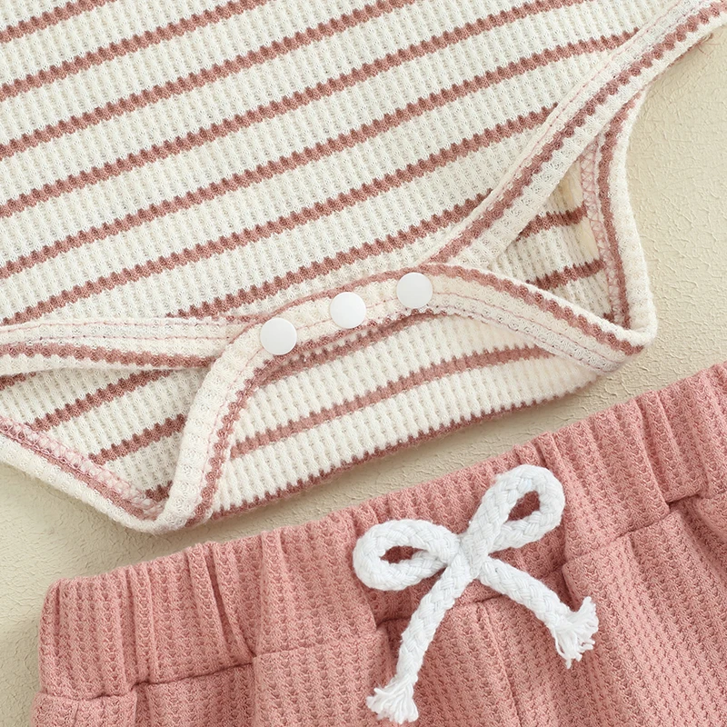 Baby Girls Shorts Set – Striped Romper & Shorts (2-Piece Outfit)