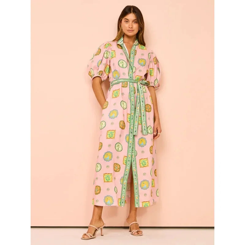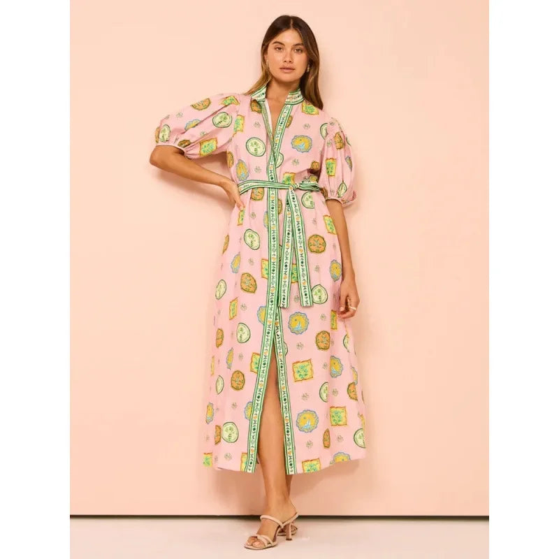 Add a touch of artistic flair to your wardrobe with this graffiti-inspired midi dress. Designed with a stand collar, button details, and statement lantern sleeves, this piece blends comfort with unique street-style fashion. Perfect for casual wear or chic minimalist looks.