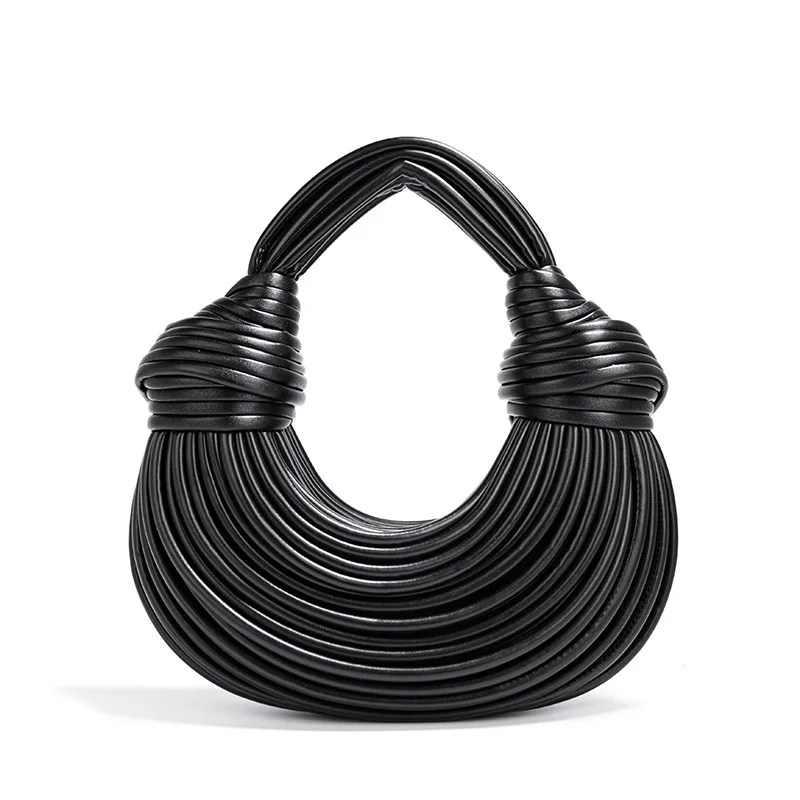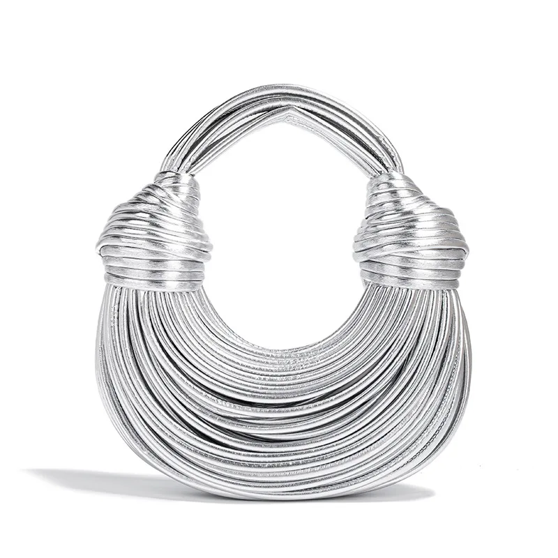 Elevate your outfit with this elegant gold handbag, designed to add a touch of luxury to both day and evening looks. Featuring a unique handwoven rope knot design and a soft dumpling-style silhouette, this chic underarm clutch is perfect for special occasions or stylish everyday wear.
