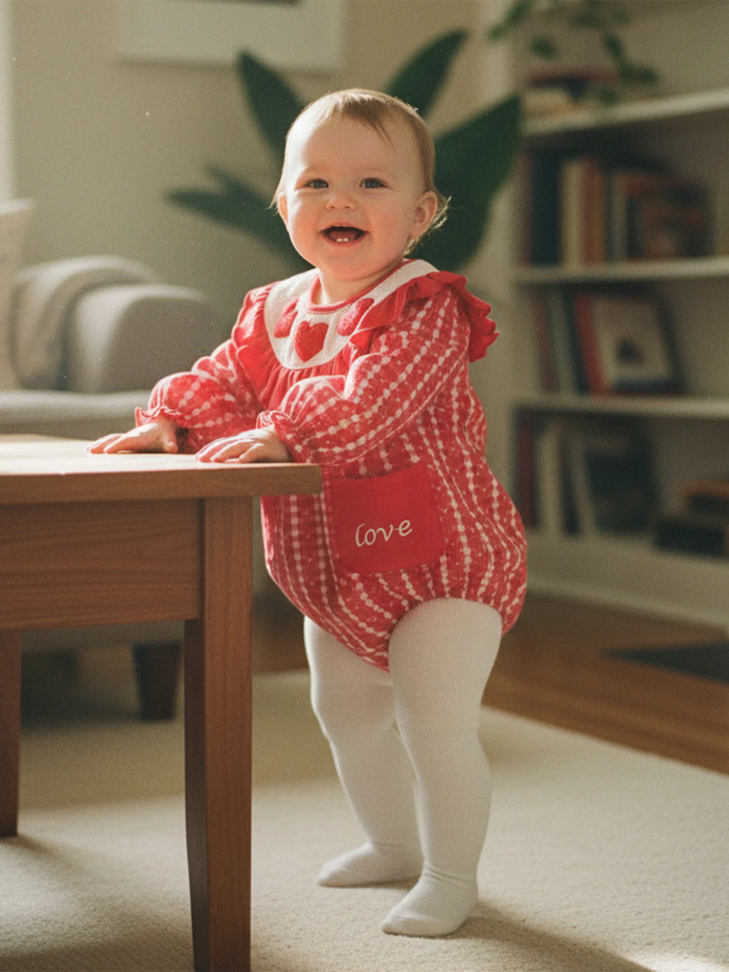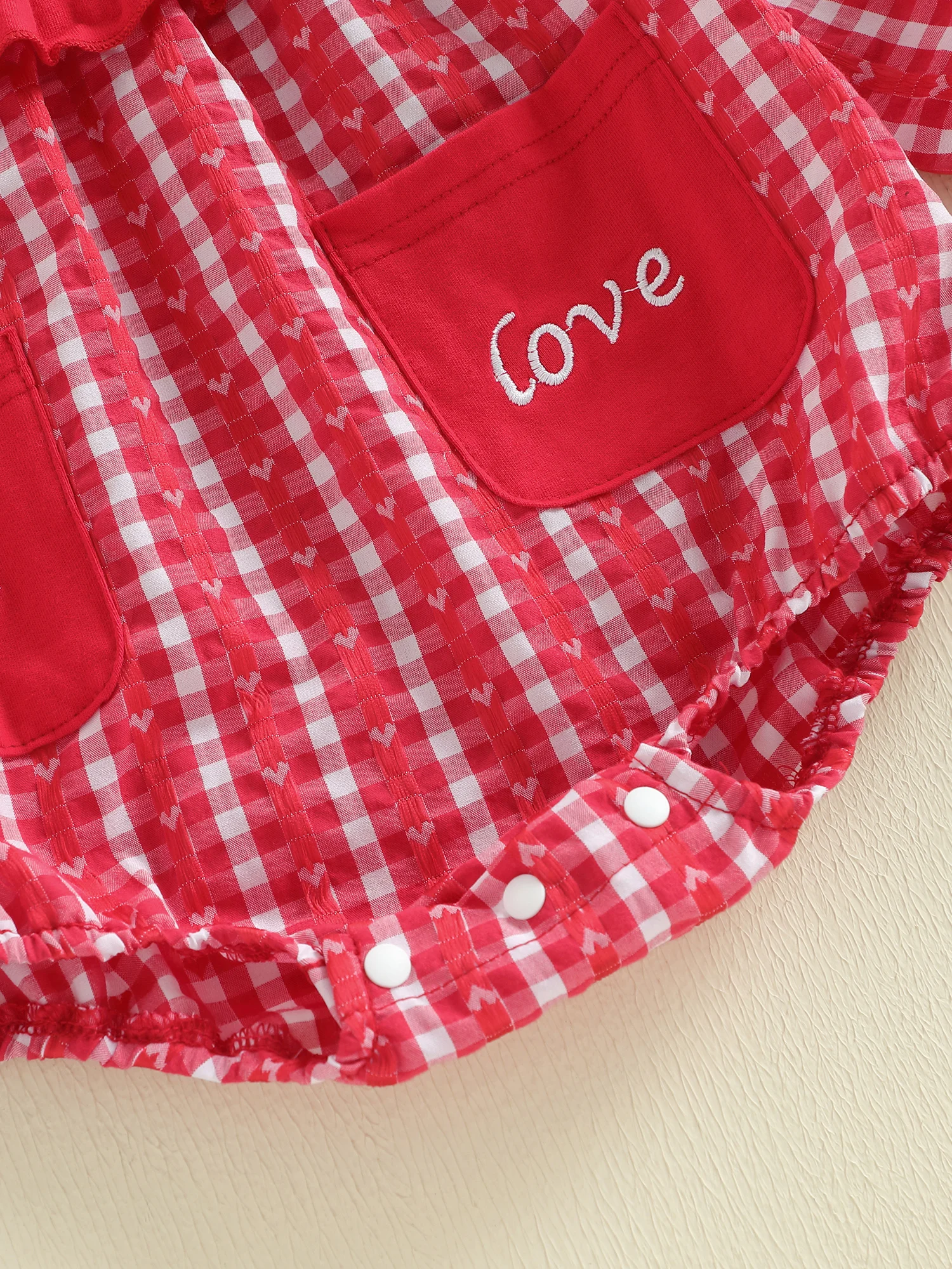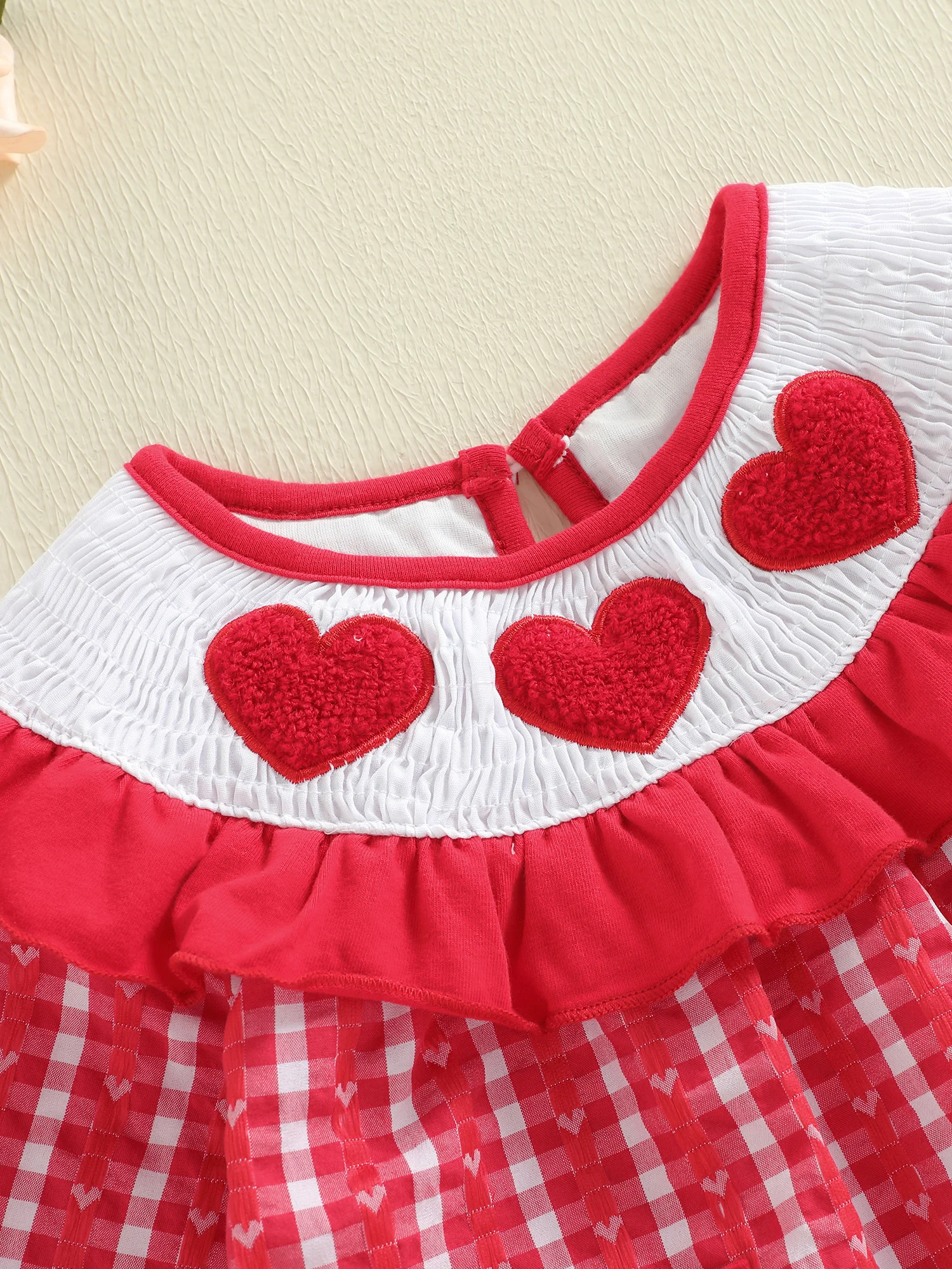 - Heart embroidery detail for a festive touch