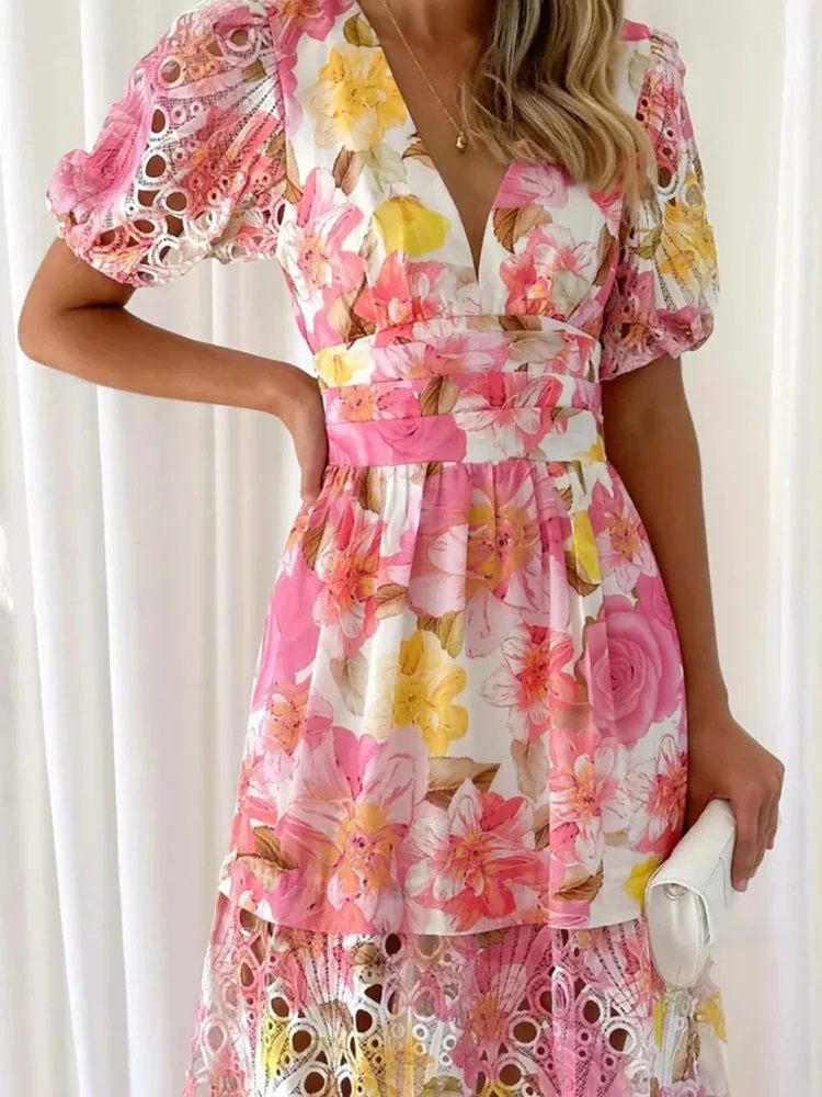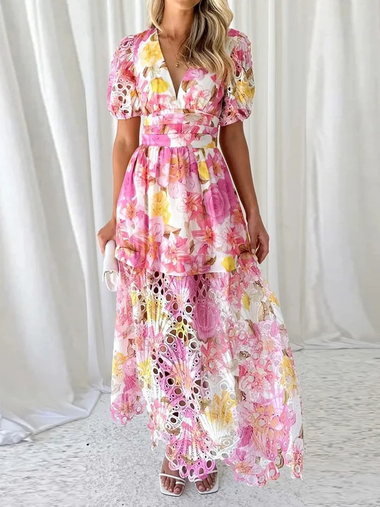 Step into elegance with this stunning Summer Maxi Dress, designed for beach days, garden parties, and special summer evenings. With its vibrant patchwork print and flattering A-line silhouette, it brings together bohemian charm and modern femininity.