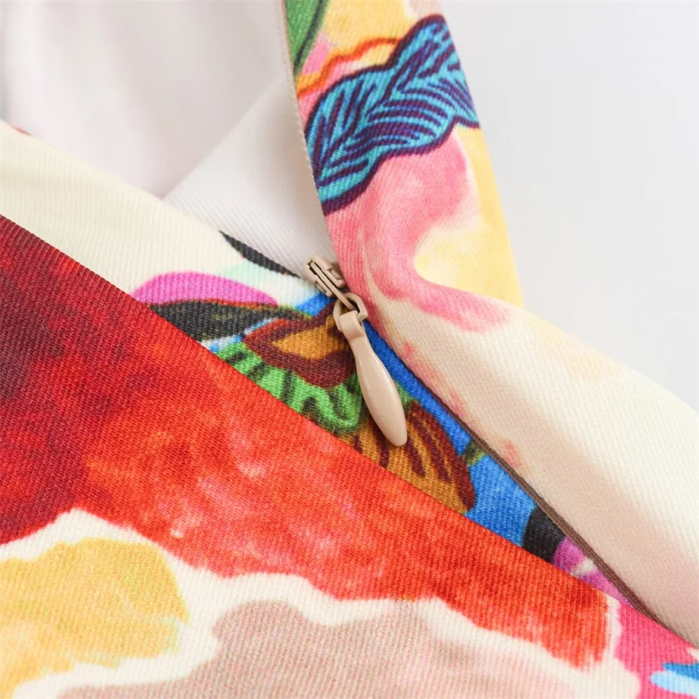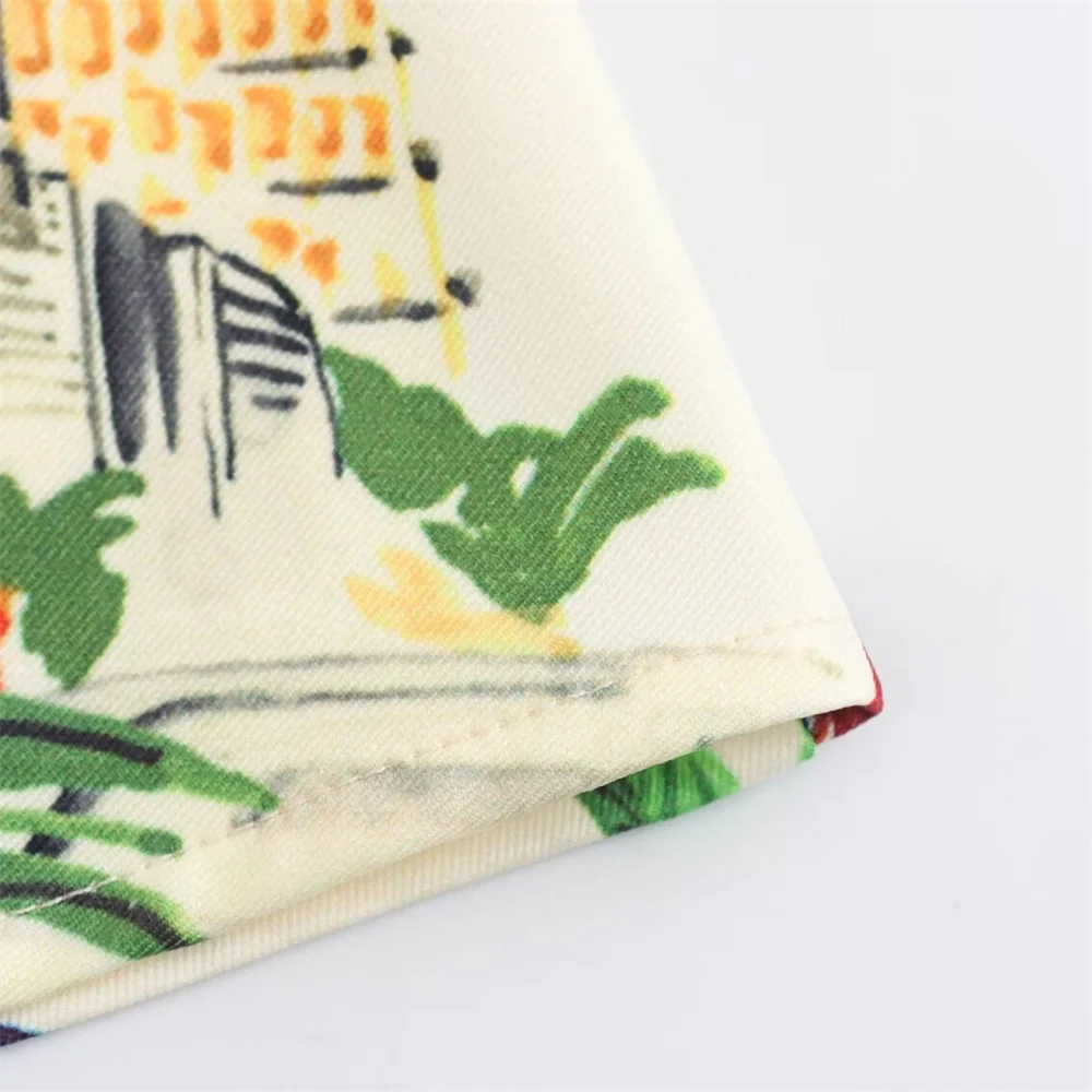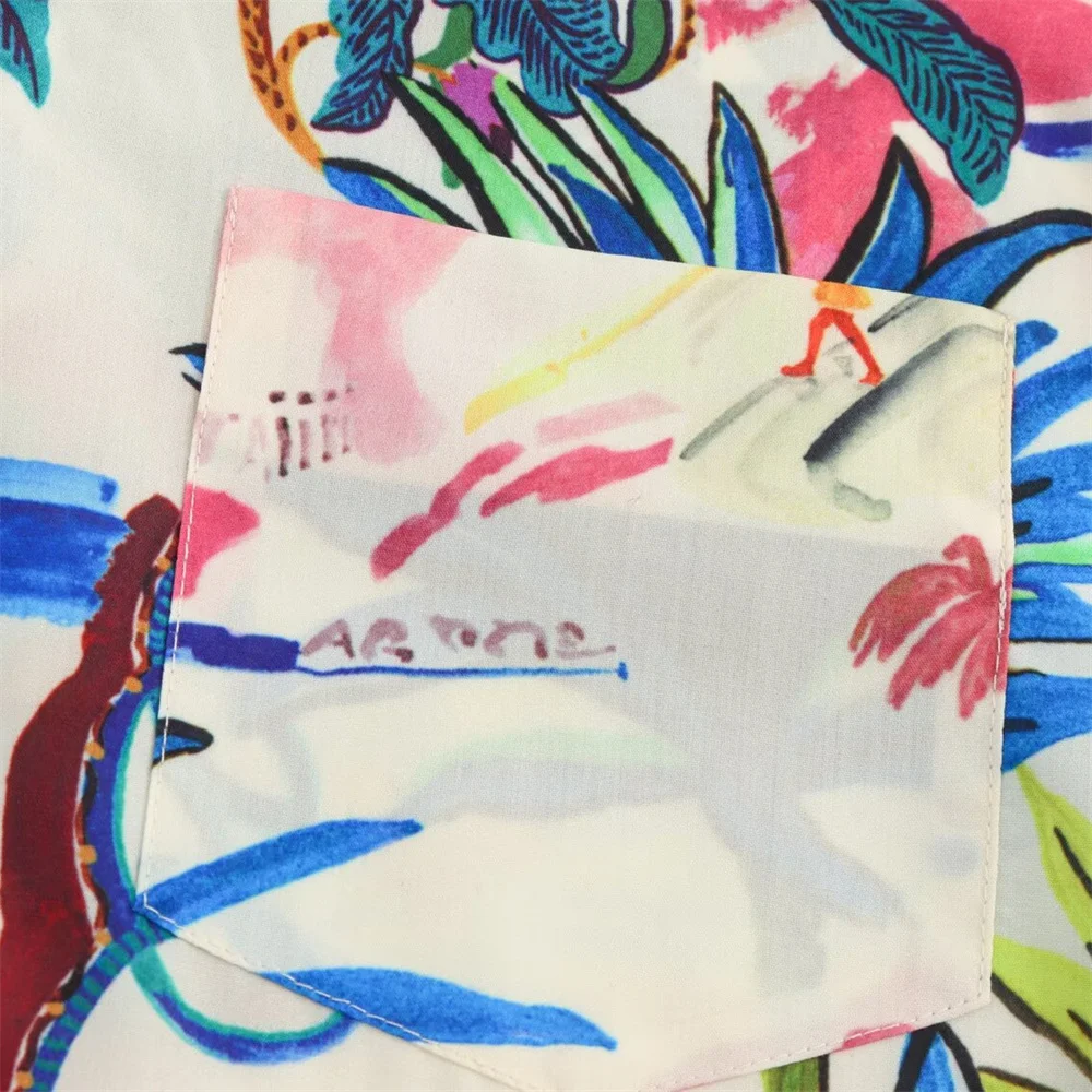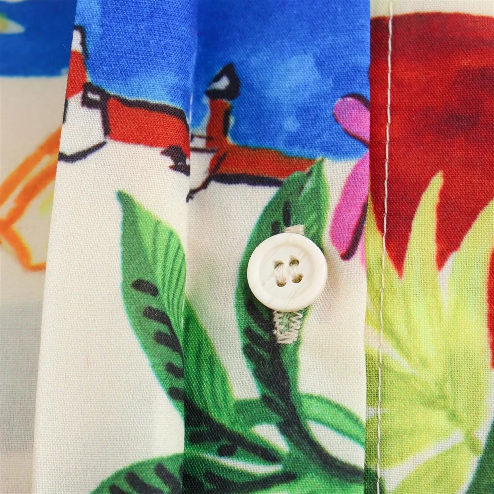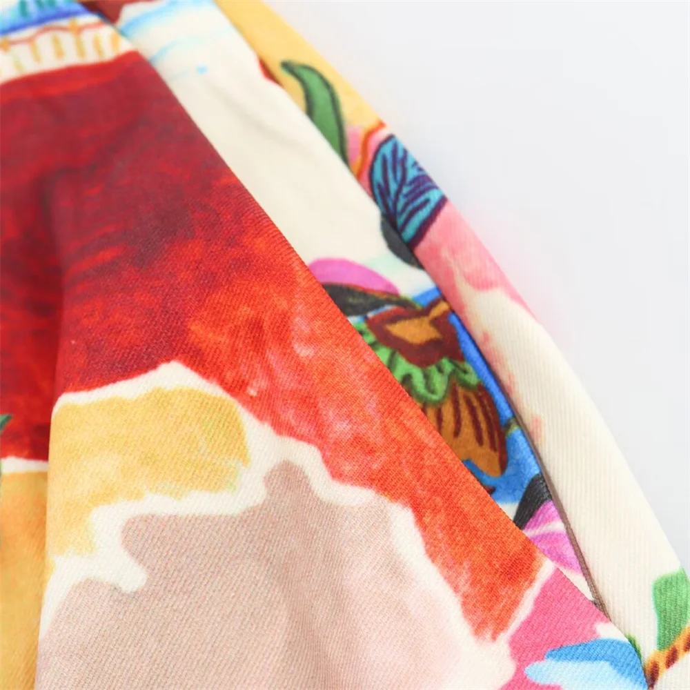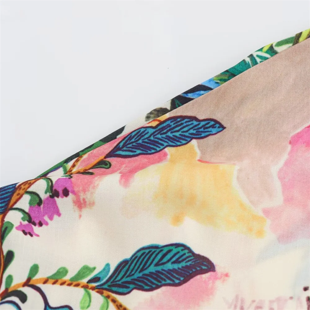 - Two-piece set: printed short-sleeve shirt + high-waist midi skirt