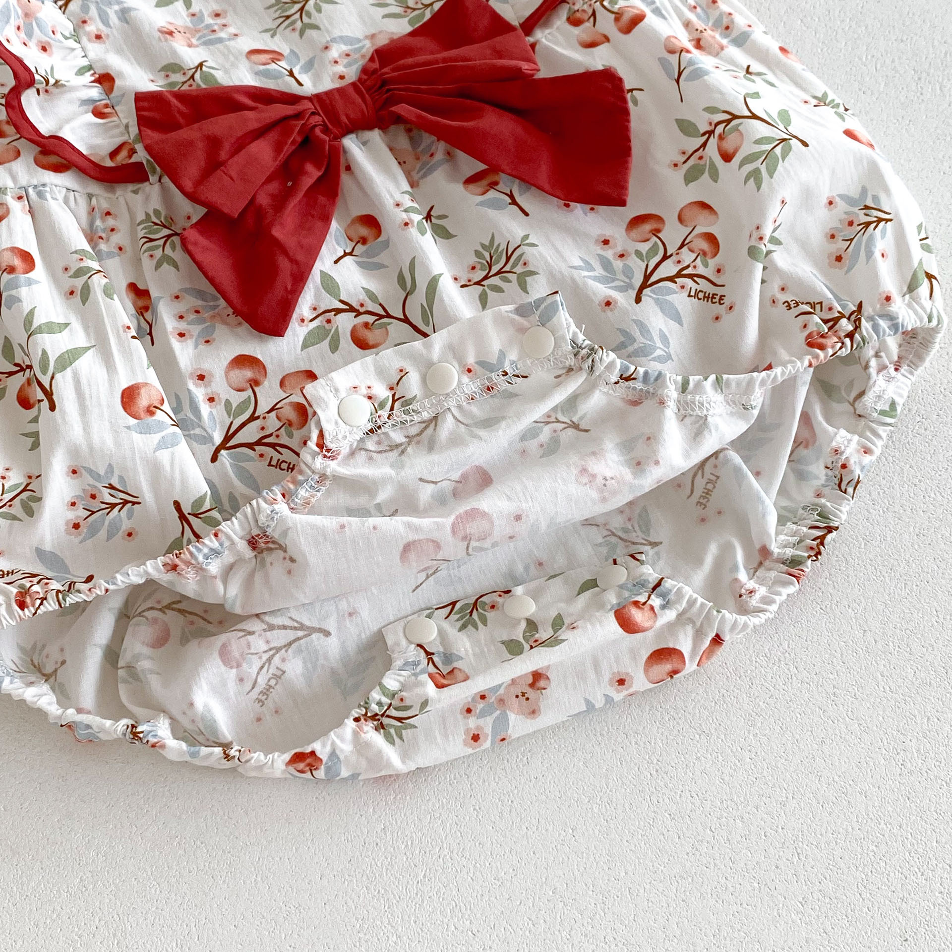 Keep your little one cool and stylish with this lightweight, sleeveless romper — perfect for warm summer days. Made from soft, breathable cotton, this triangle-style jumpsuit features a double-breasted front for easy dressing and a charming pastoral look. Complete with a matching red hairband, it’s an adorable outfit choice for playdates, photoshoots, or sunny strolls.