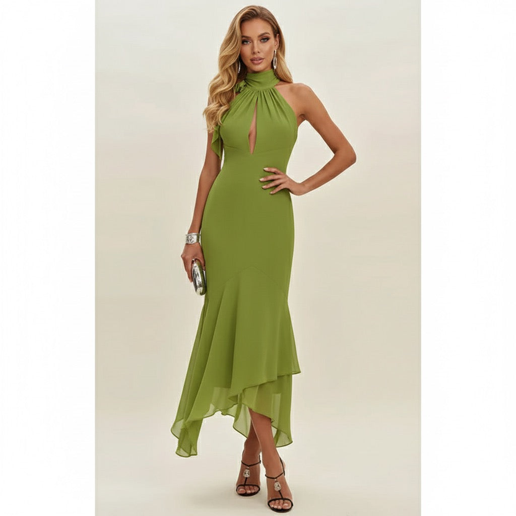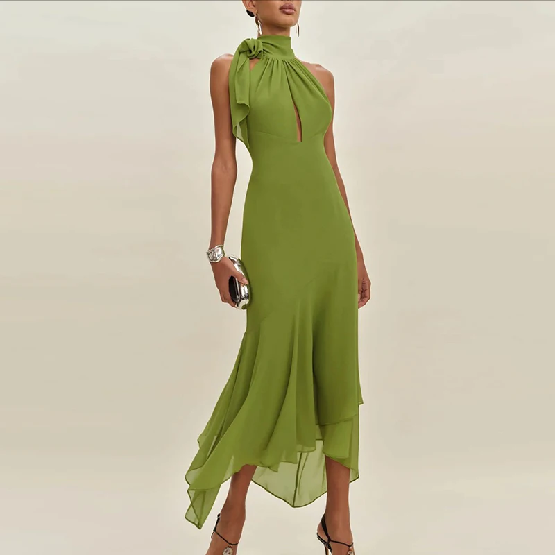 Turn heads this season with our elegant Summer Backless Lace-Up Dress. Designed with a flattering halter neckline, ruffle details, and a chic bohemian silhouette, this piece is perfect for both office chic and evening parties.