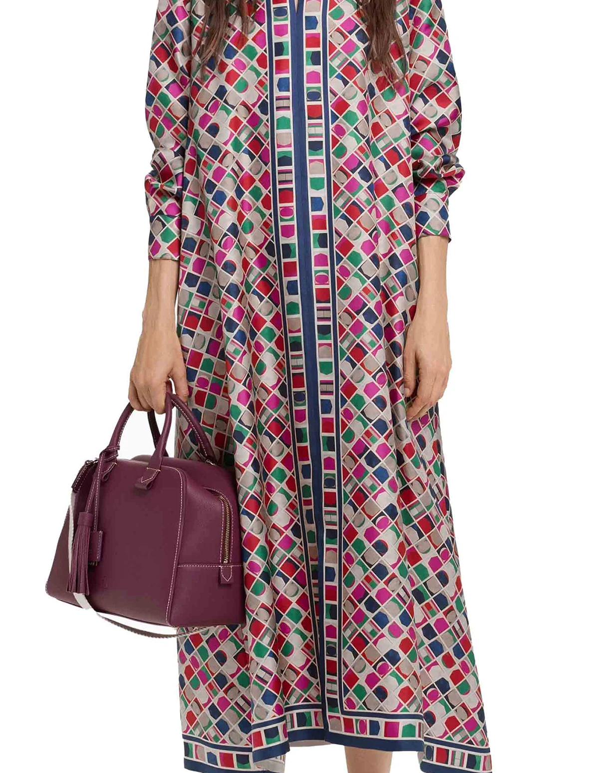 Step into timeless elegance with this vintage-inspired print dress. Featuring a chic scarf collar and sash detail, this loose-fit mid-calf dress is perfect for effortless autumn style.
