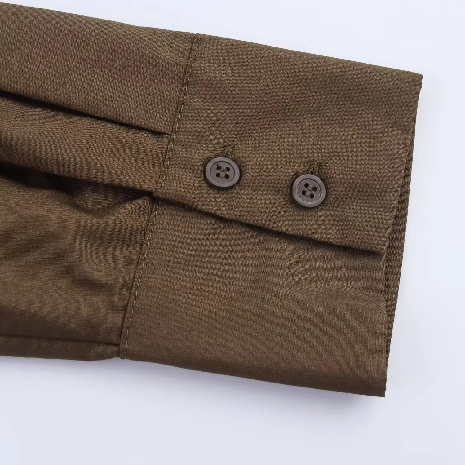Bring timeless elegance into your wardrobe with this single-breasted long shirt dress. Featuring draped folds and an ankle-length A-line silhouette, this piece blends vintage charm with modern streetwear sophistication.