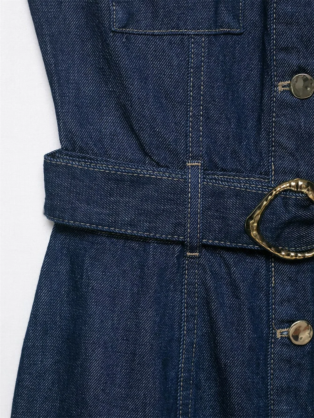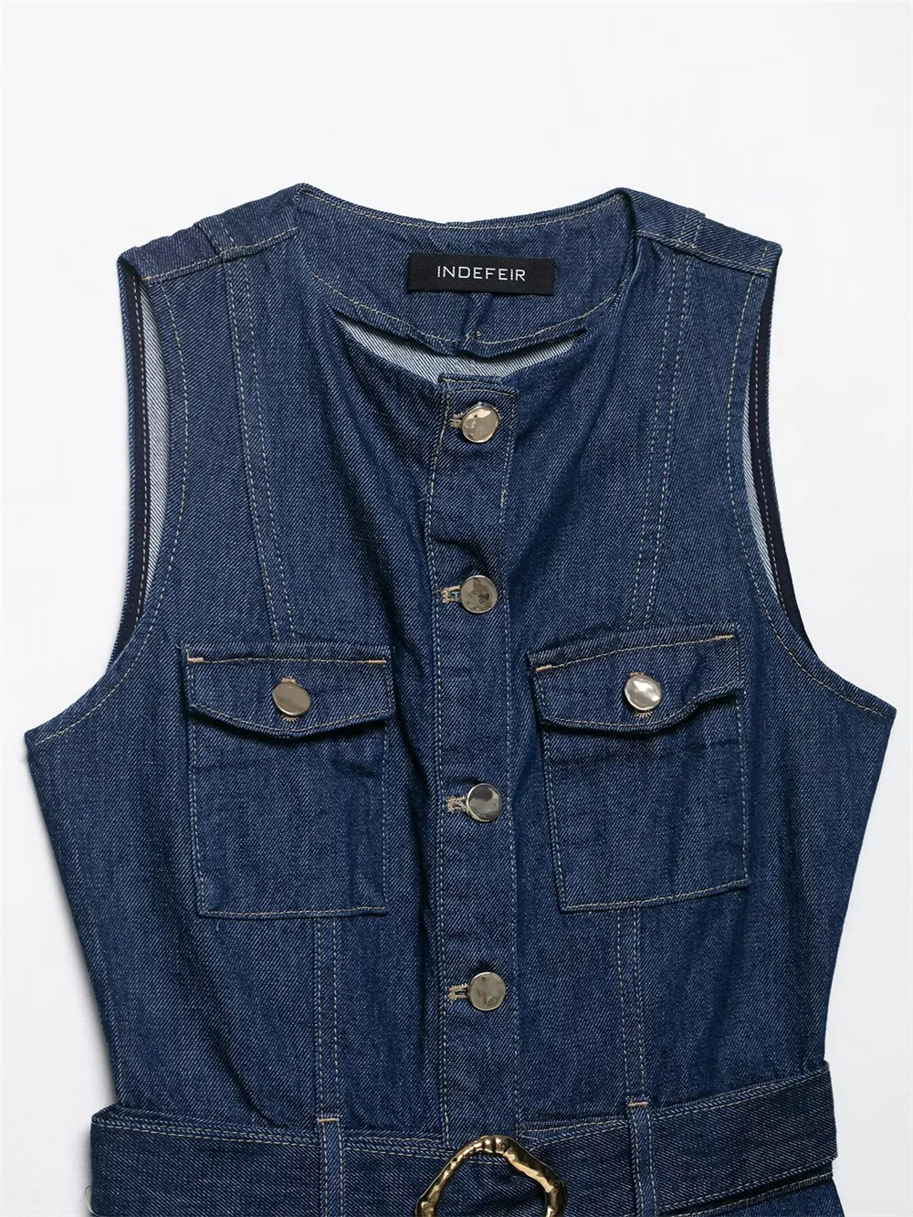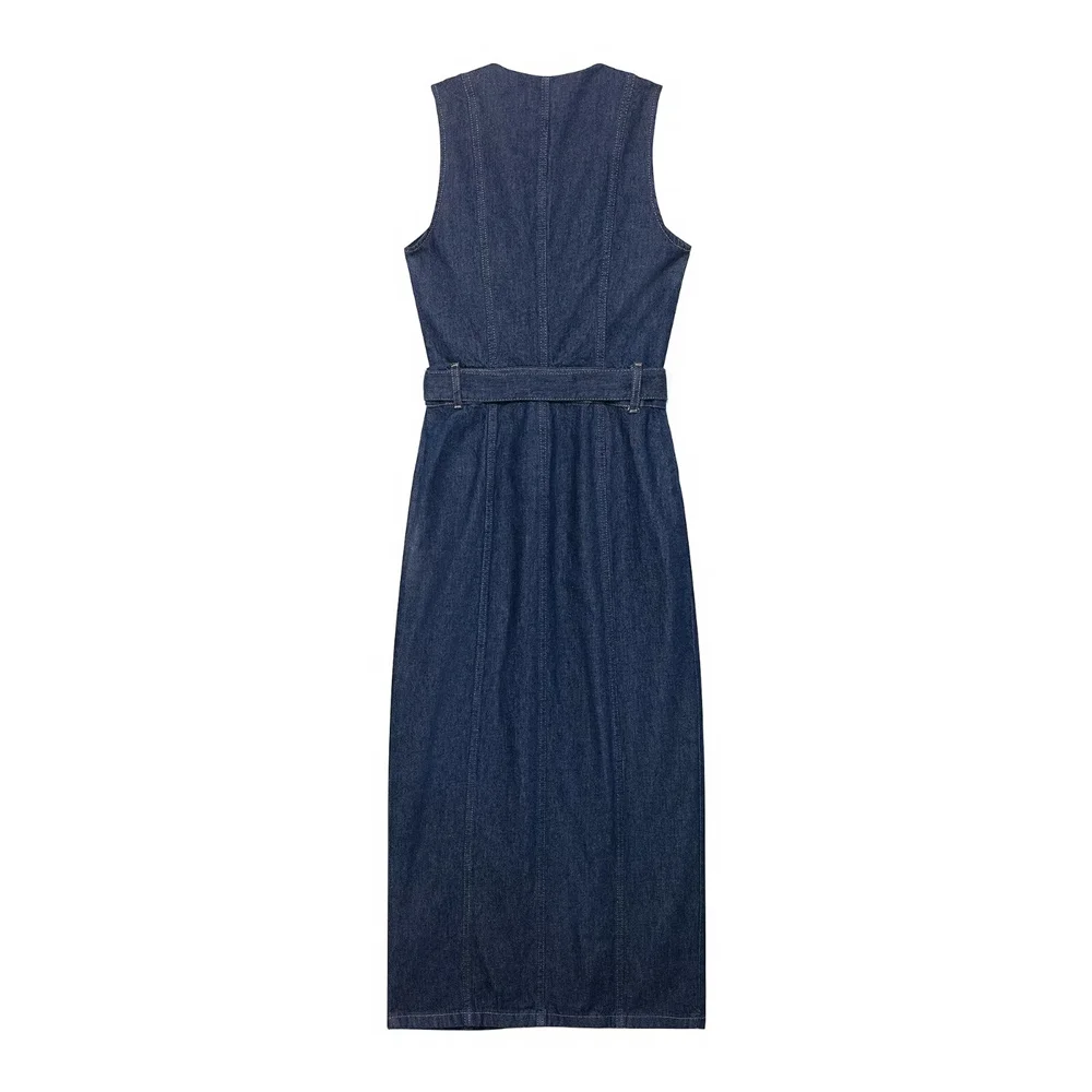 Refresh your summer wardrobe with this elegant belted denim midi dress, designed for women who love timeless style with a chic twist. The belted waist flatters your figure, while the sleeveless cut keeps it light and breathable for warm-weather wear.