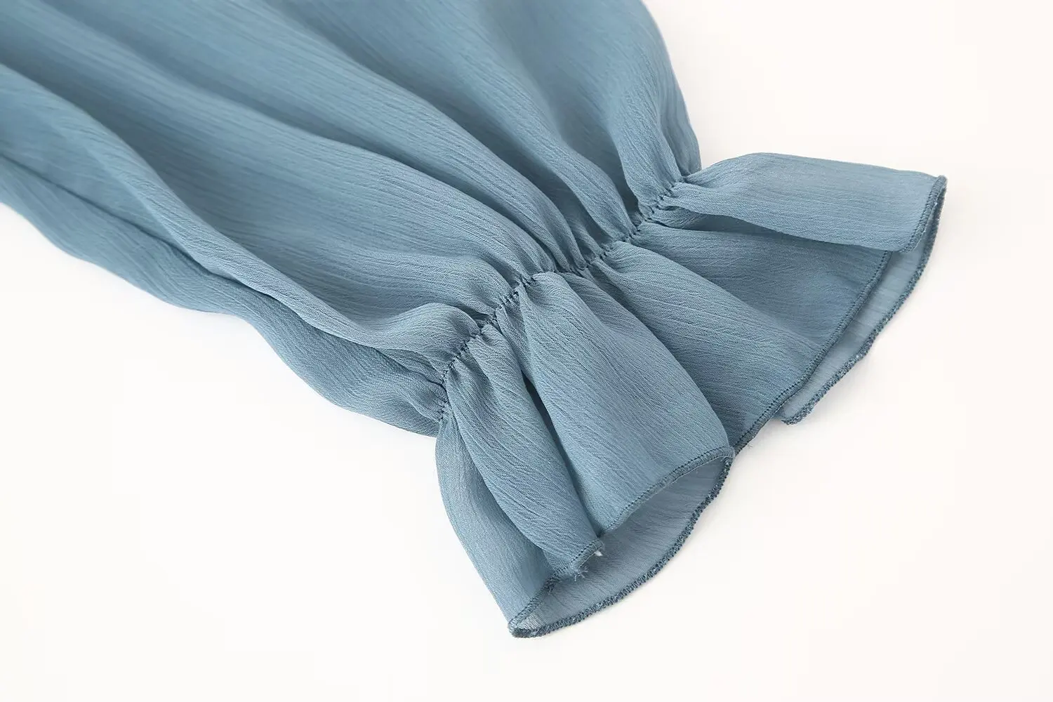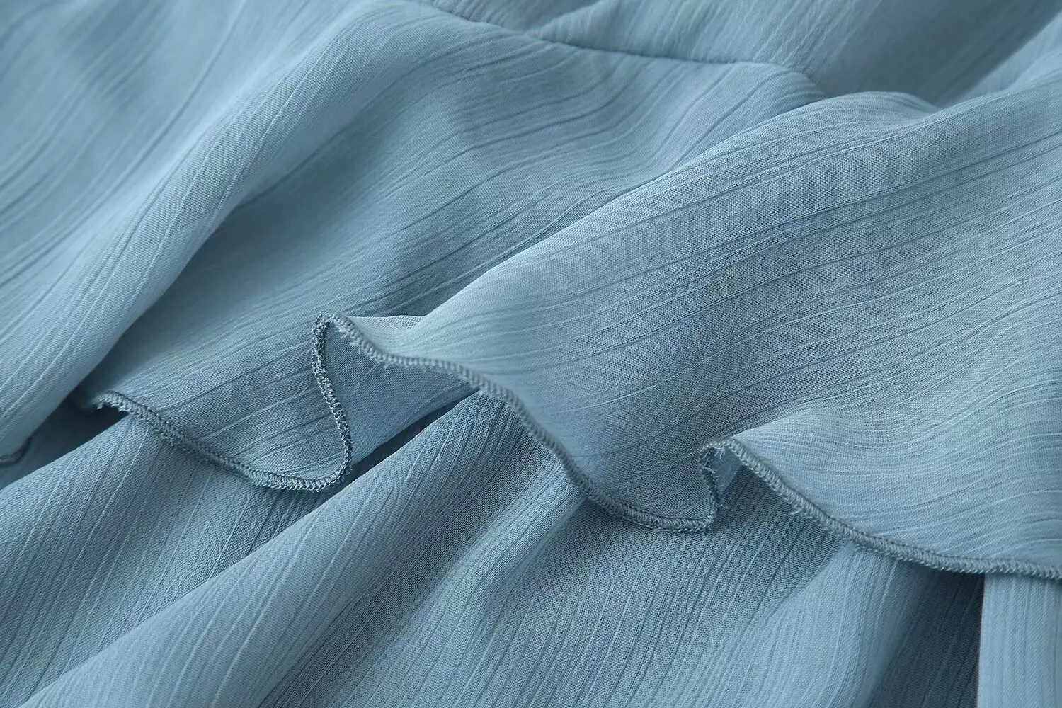 - Design: V-neckline with long sleeves, layered tiered decoration, and an adjustable waist belt for a flattering fit.