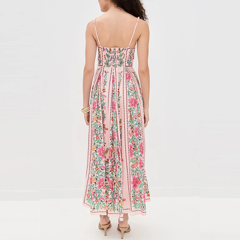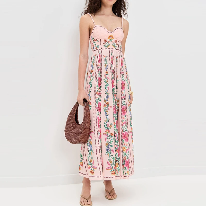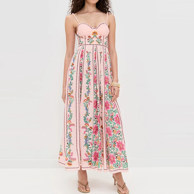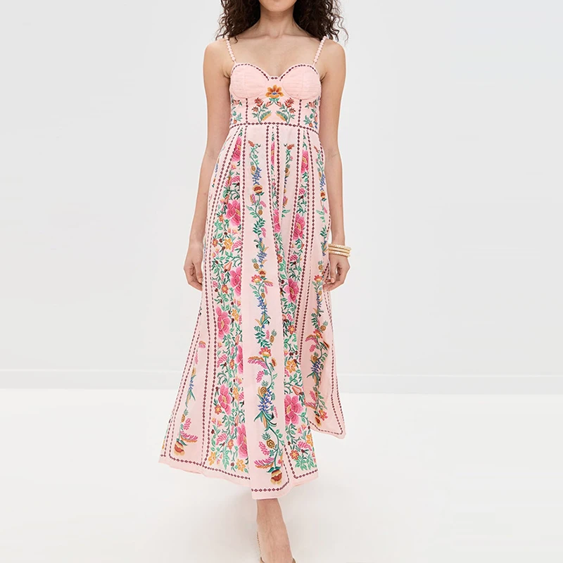 Women’s Elegant Evening Dress – Romantic Floral Print Suspender Style