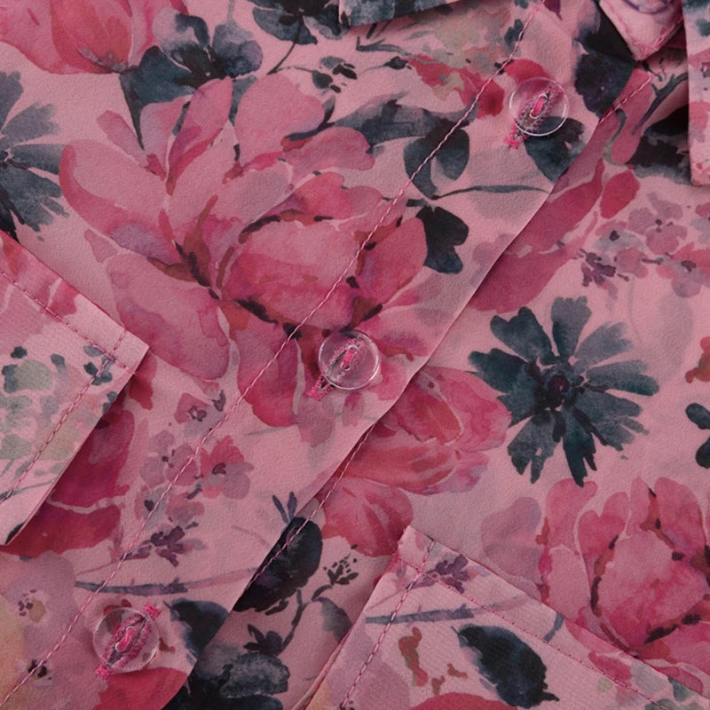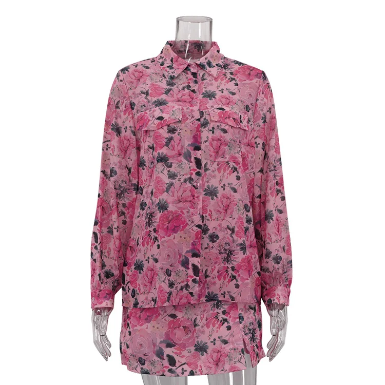 - Design: Printed turn-down collar shirt with long sleeves and button closure, paired with a flattering A-line high-waist mini skirt featuring a stylish front split.