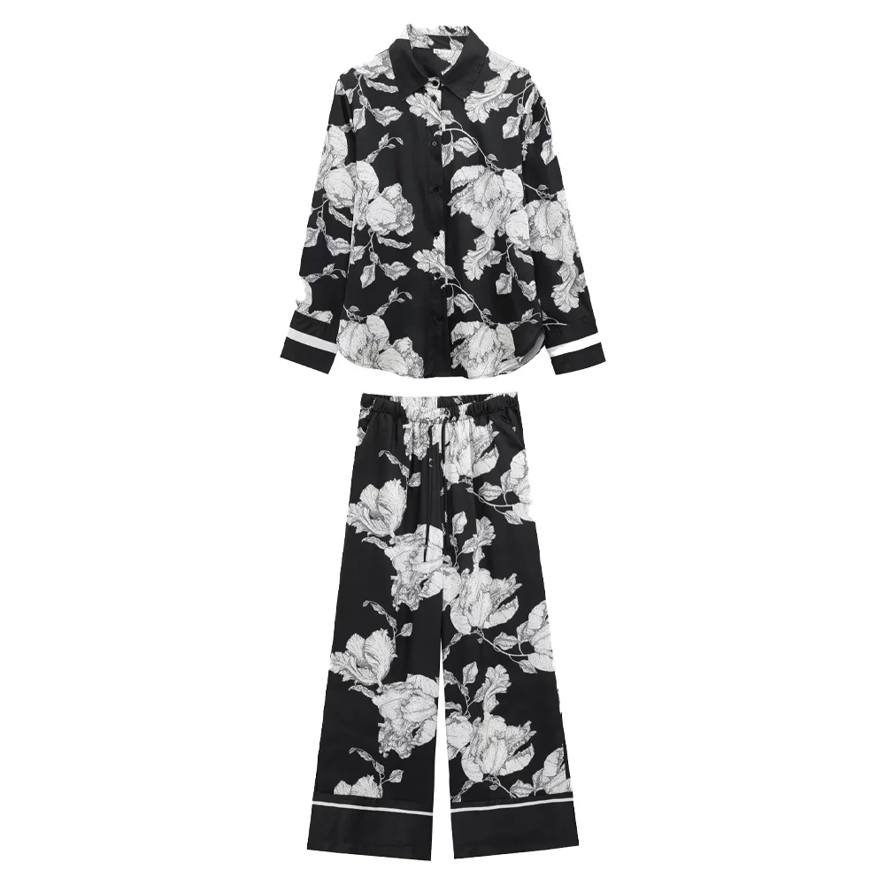 Step into effortless sophistication with this chic two-piece outfit featuring a printed button-up shirt and matching high-waist straight pants. Designed for both style and comfort, this set is perfect for casual days, workwear, or weekend outings. The elegant print and tailored silhouette create a polished, modern look for any occasion.