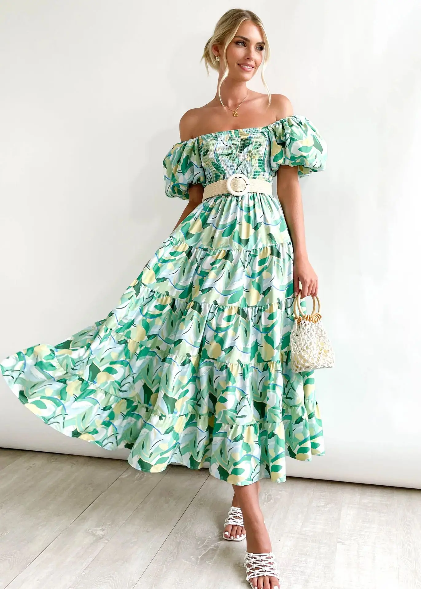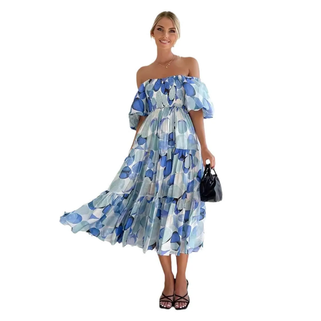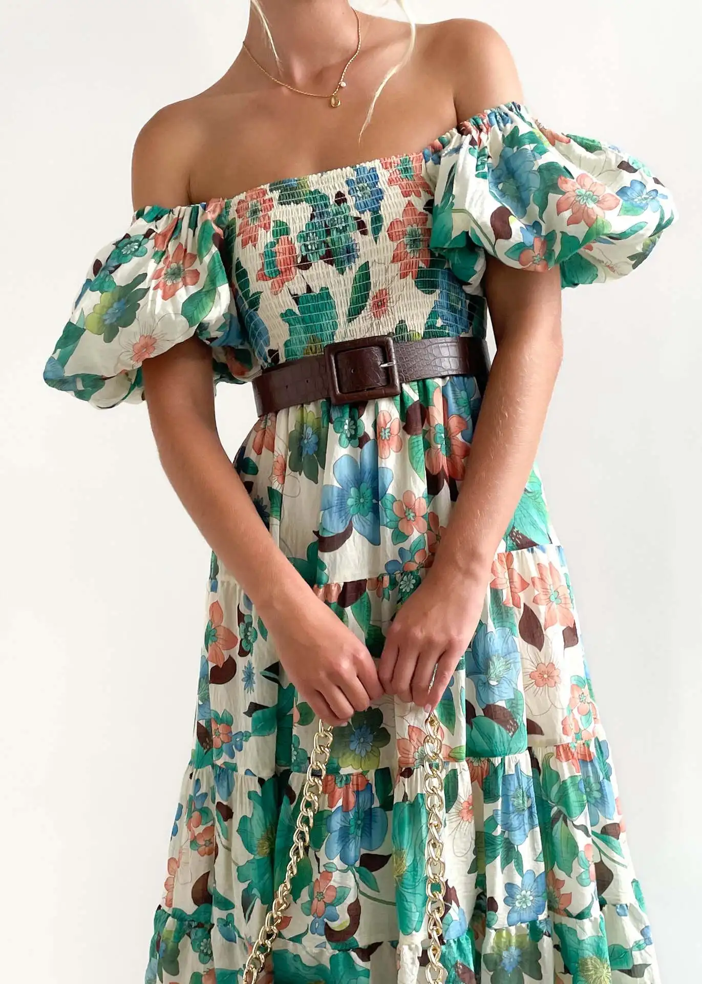 Women’s Off-Shoulder Puff Sleeve Floral Maxi Dress