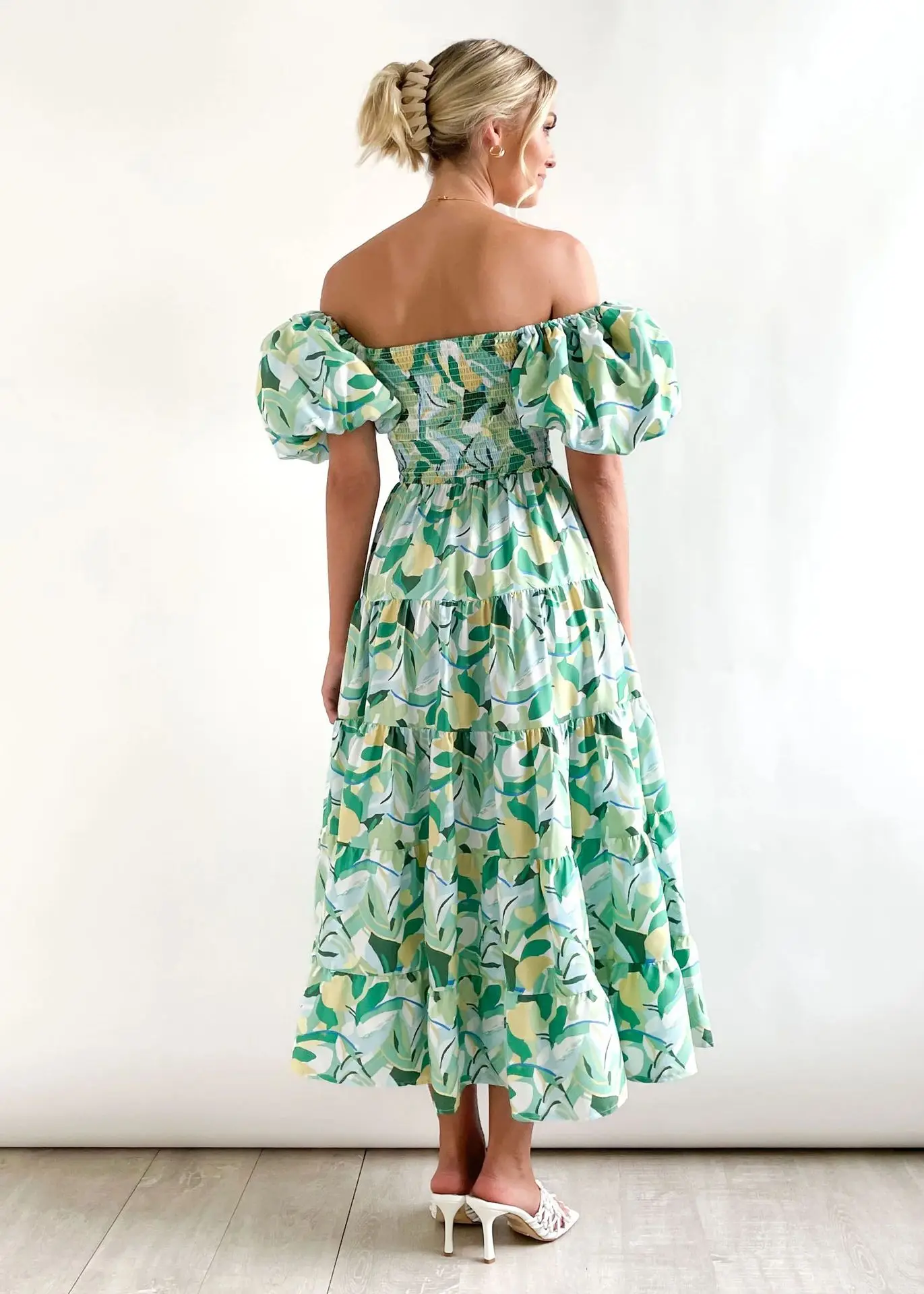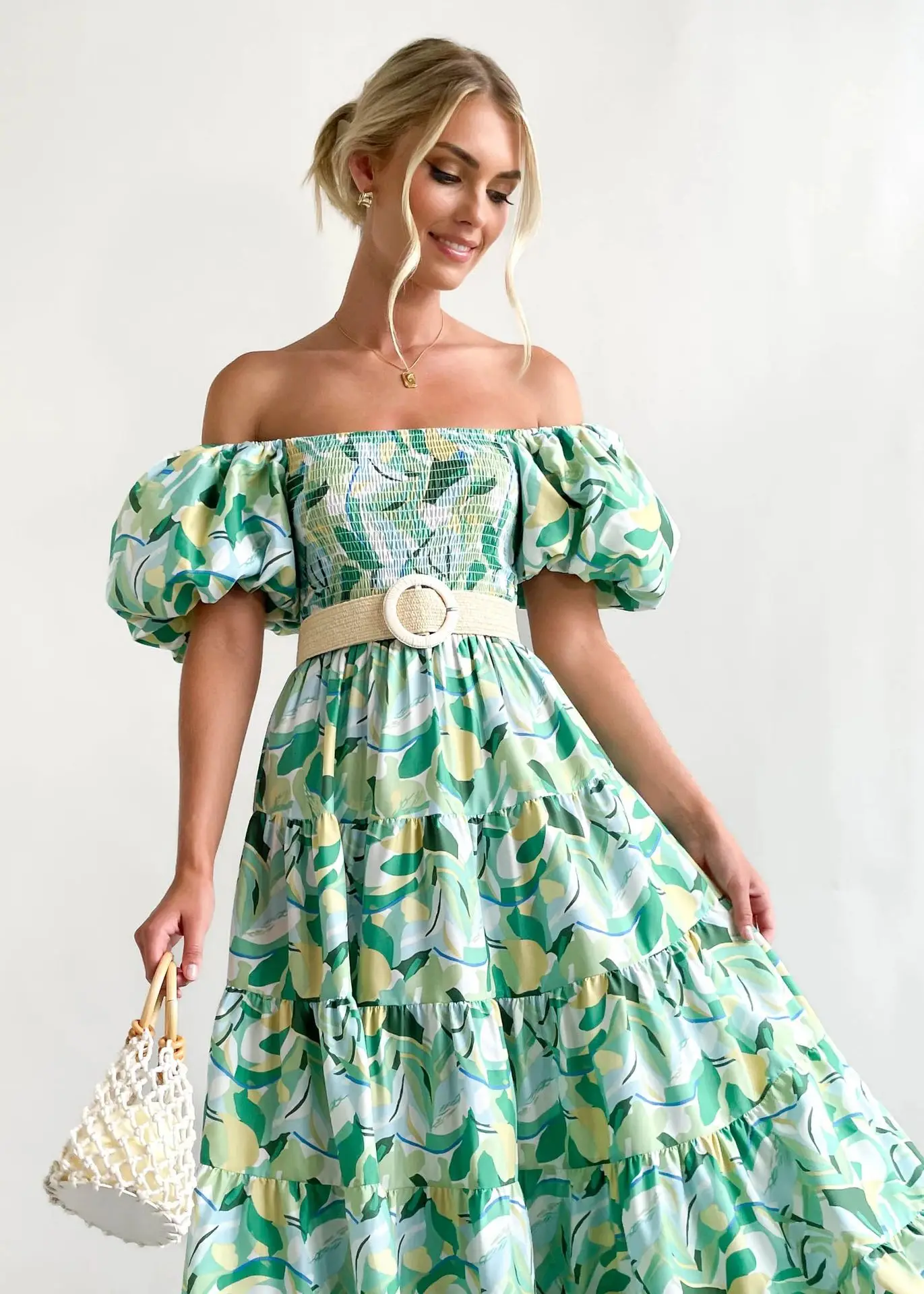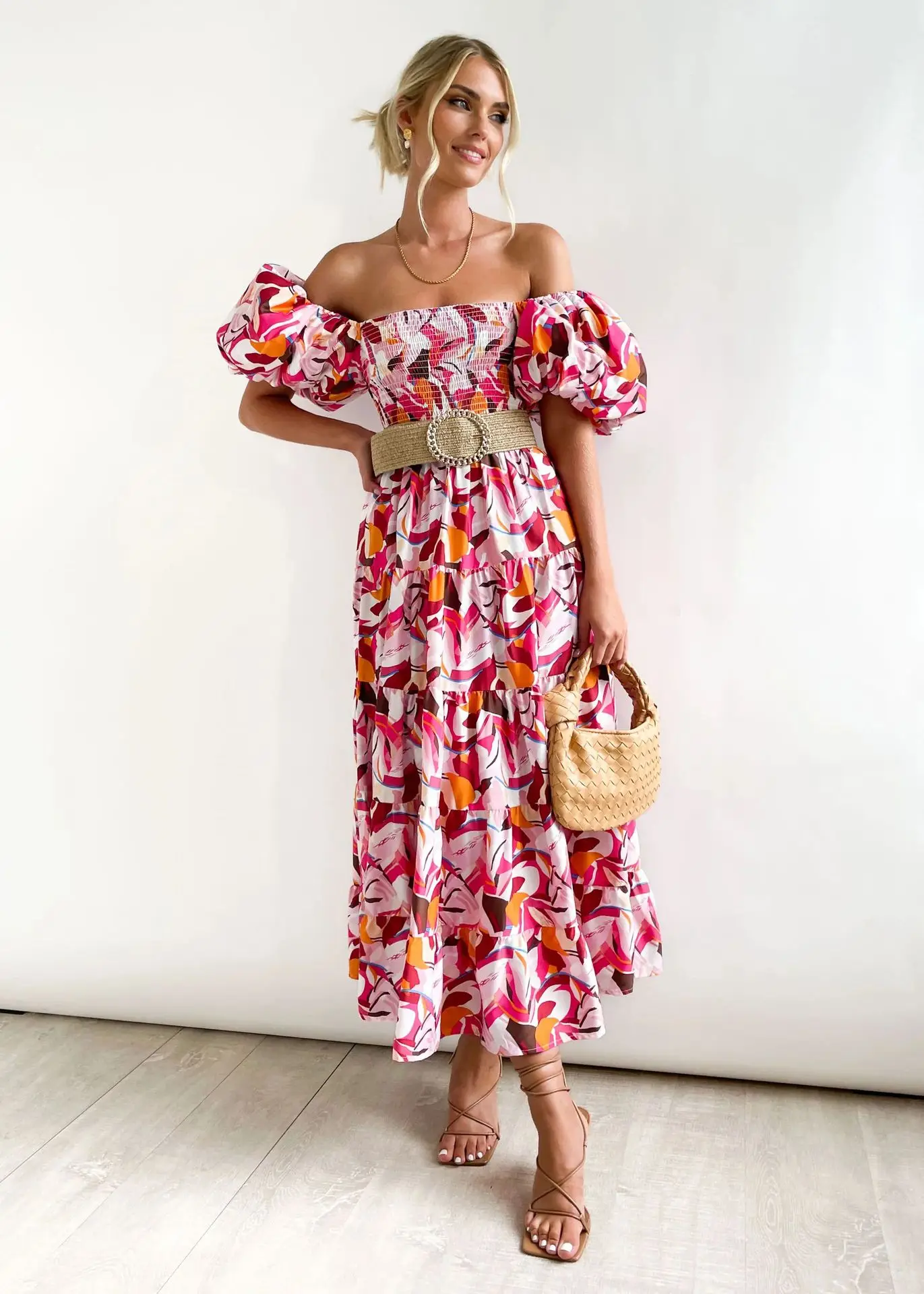 Women’s Off-Shoulder Puff Sleeve Floral Maxi Dress