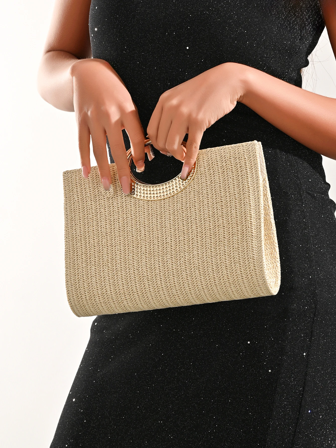 Complete your look with this stylish woven evening bag, designed to combine elegance with everyday practicality. Featuring a spacious interior and versatile crossbody design, this bag is perfect for special occasions while still being easy to carry and style.